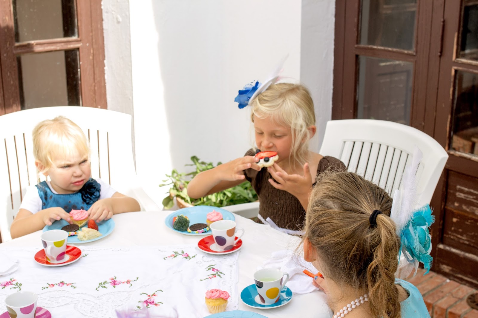 After our Rome trip it was time to get ready for Evelyn's birthday party! When I asked her what she wanted to do she said she wanted to do a make up party....which I quickly helped her change her mind about...no way I'm doing a make up party for a bunch of 5-6 year olds! :) So we decided on a tea party instead, which was super fun and the girls loved it! We had lots of treats and pretty decorations. The girls got to decorate their own little "hair pieces" (London inspired ;) ) and wear them with their beads and white gloves. They looked so adorable! We let them decorate their hairpieces, then ate, opened presents and let the girls play while the moms ate and chatted! Pretty easy peasy party and fun for the girls!